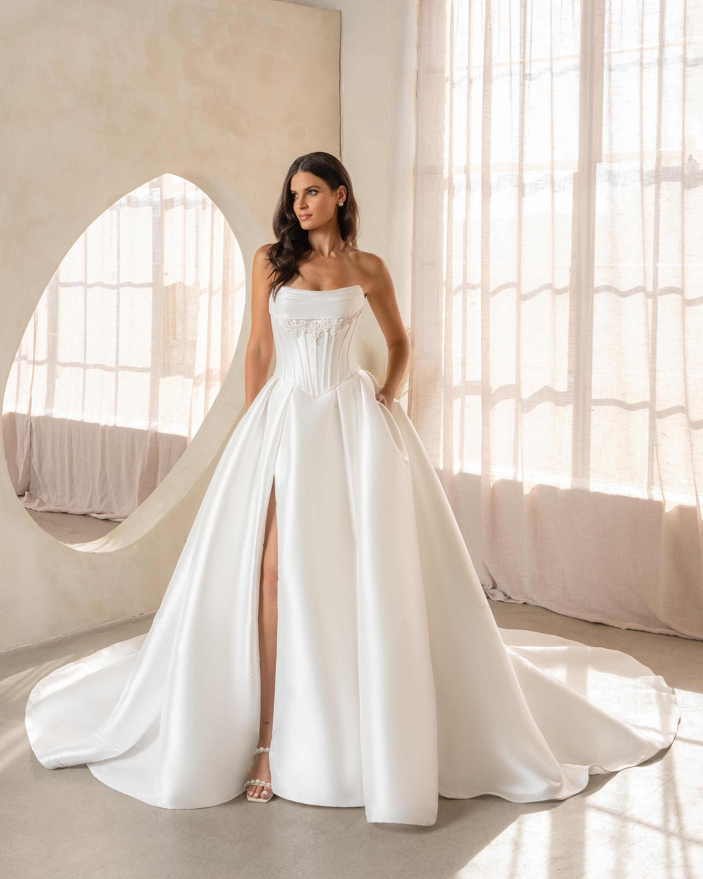 Made to order. Custom change options available through our global network of bridal retailers.