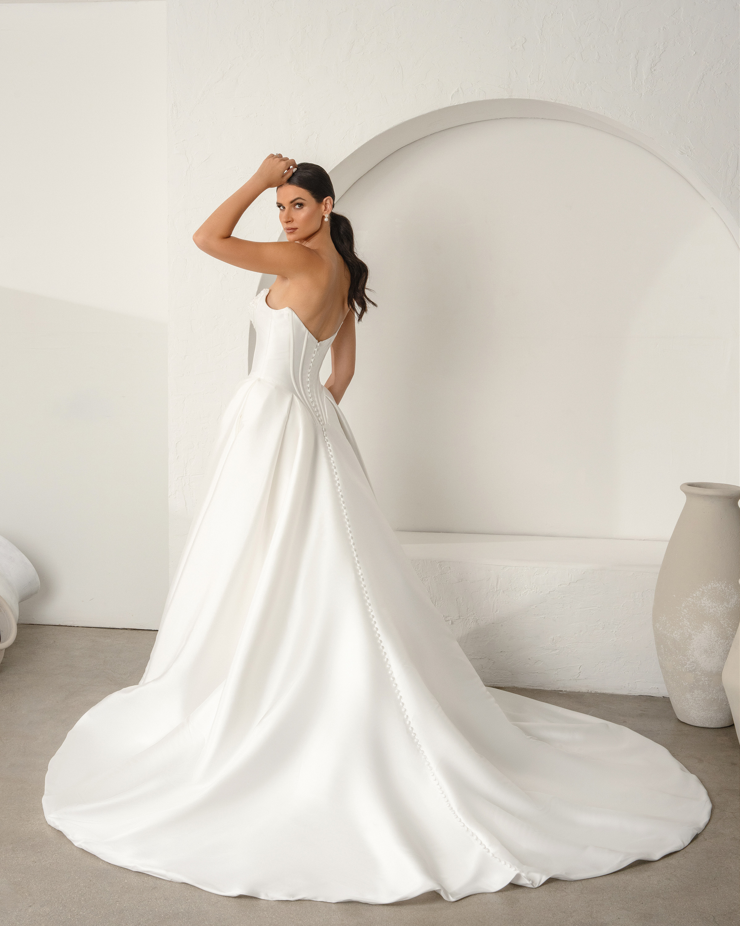 Made to order. Custom change options available through our global network of bridal retailers.